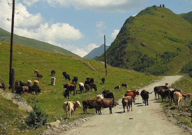 Pożegnanie (na razie) z Wysokim Kaukazem. W Gruzji zwierzaki są równouprawnionymi użytkownikami dróg.